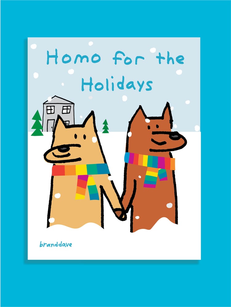 Here's a super fun card to share - sold in packs of 4 with bright blue envelopes. Blank inside, so you have lots of room to write a witty holiday greeting! (size - A2)